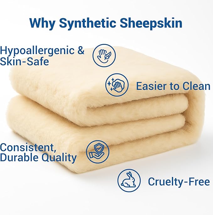 Skil-Care Synthetic Beige Sheepskin Pad provides targeted coverage for pressure-prone areas, reducing friction and protecting the skin from bedsores. Ideal for elderly care, wheelchair use, and hospice care routines.